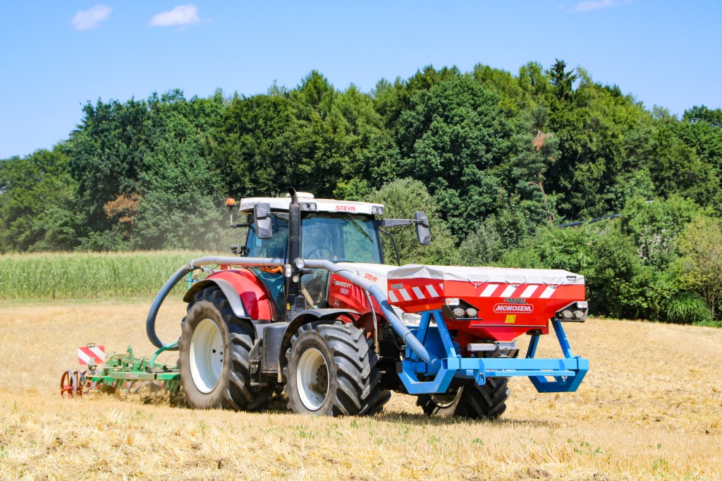 Mit der Sämaschine werden Getreide und Sojabohnen sorgfältig in den Boden ausgebracht. Dies erfolgt mit einer Säkombination von Kreiselegge und Sämaschine.